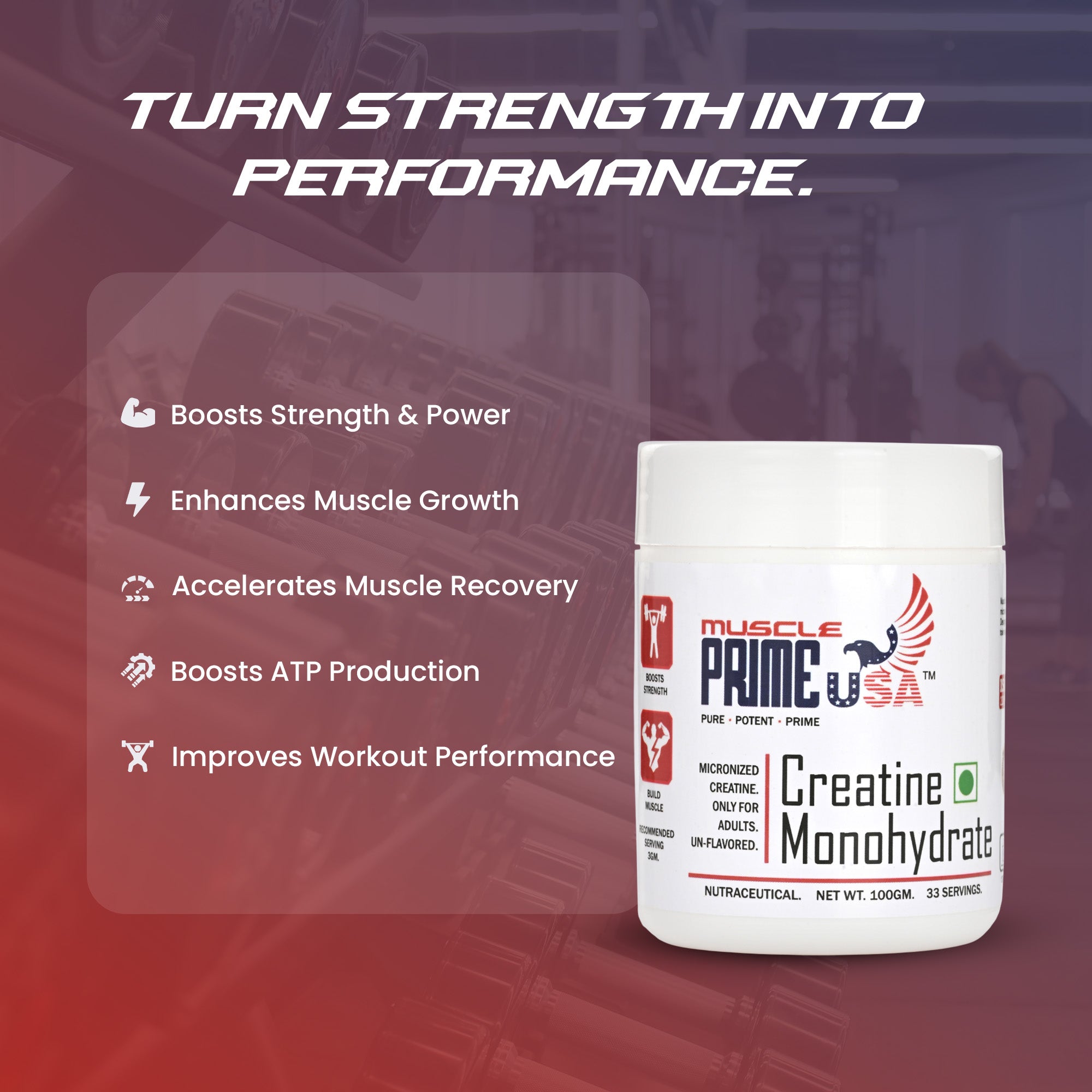 Unleash explosive strength, power, and endurance with Muscle Prime USA Creatine Monohydrate – your ultimate training companion. Our 99.9% pure micronized creatine is designed for fast absorption and maximum effectiveness, helping you push past limits and achieve peak performance.