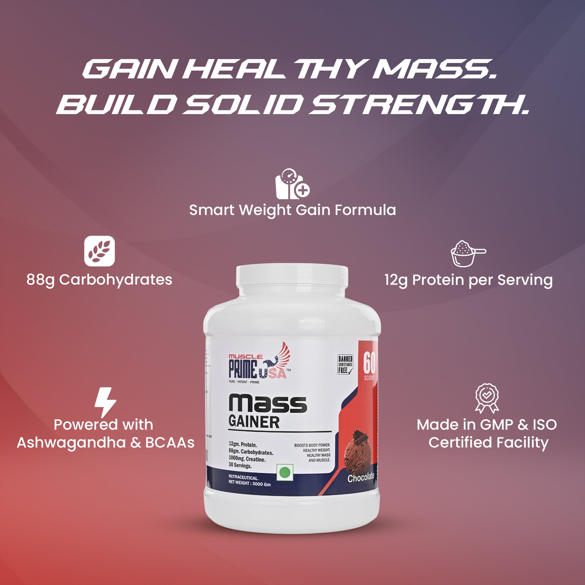 • Pack on Lean Mass – 88g carbs and 12g protein provide the energy and nutrition for serious muscle growth.